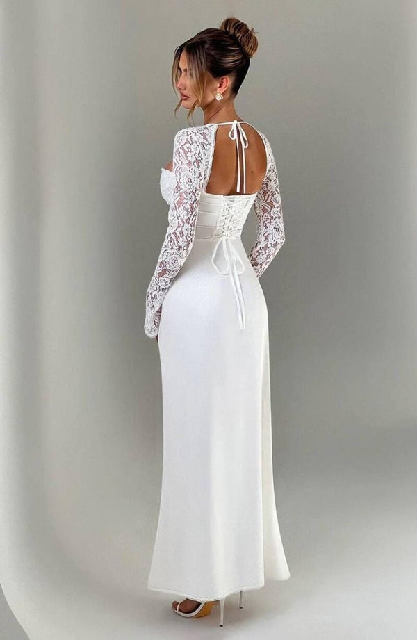 Shfaq elegancën dhe stilin tënd unik me këtë fustan të bardhë me krah tyl!