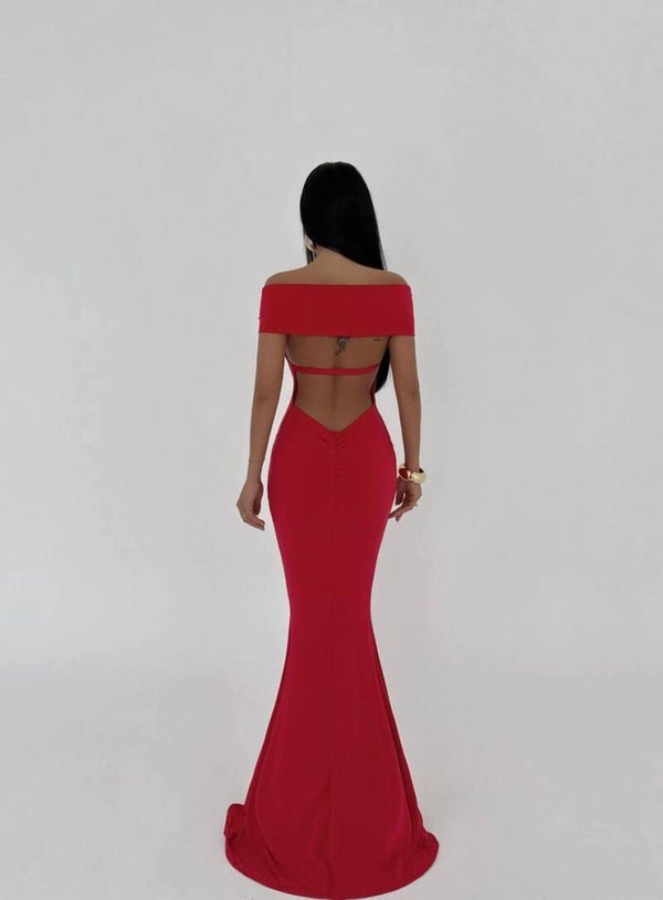 Shfaq elegancën dhe stilin tënd unik me këtë fustan të kuq të gjatë bust me guask!