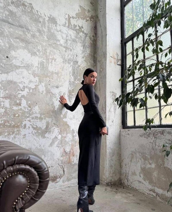 Sjellim një fustan që mishëron elegancën, feminitetin dhe stilin bashkëkohor – Fustani Midi i Zi me Shpinë të Hapur. Ky model është krijuar për t’i dhënë veshjes tuaj një pamje të sofistikuar, duke e bërë perfekt për mbrëmje të veçanta, festa elegante apo evente ku dëshironi të spikatisni me një stil unik.Detaji më i veçantë i këtij fustani është padyshim pjesa e hapur në shpinë, e cila shton një element dramatik dhe sensualitet të sofistikuar. Ky dizajn i veçantë i jep veshjes një karakter të veçantë dhe e bën ideale për mbrëmje ku dëshironi të jeni në qendër të vëmendjes.Materiali i butë dhe elastik përqafon trupin në mënyrë perfekte, duke siguruar rehati gjatë gjithë kohës, ndërkohë që struktura e fustanit ruan formën dhe qëndrueshmërinë edhe pas shumë përdorimesh. Ky fustan mund të kombinohet në mënyrë të shkëlqyer me taka të larta, çizme elegante ose sandale minimaliste, si dhe me një çantë të vogël për një pamje të plotë dhe të kuruar.