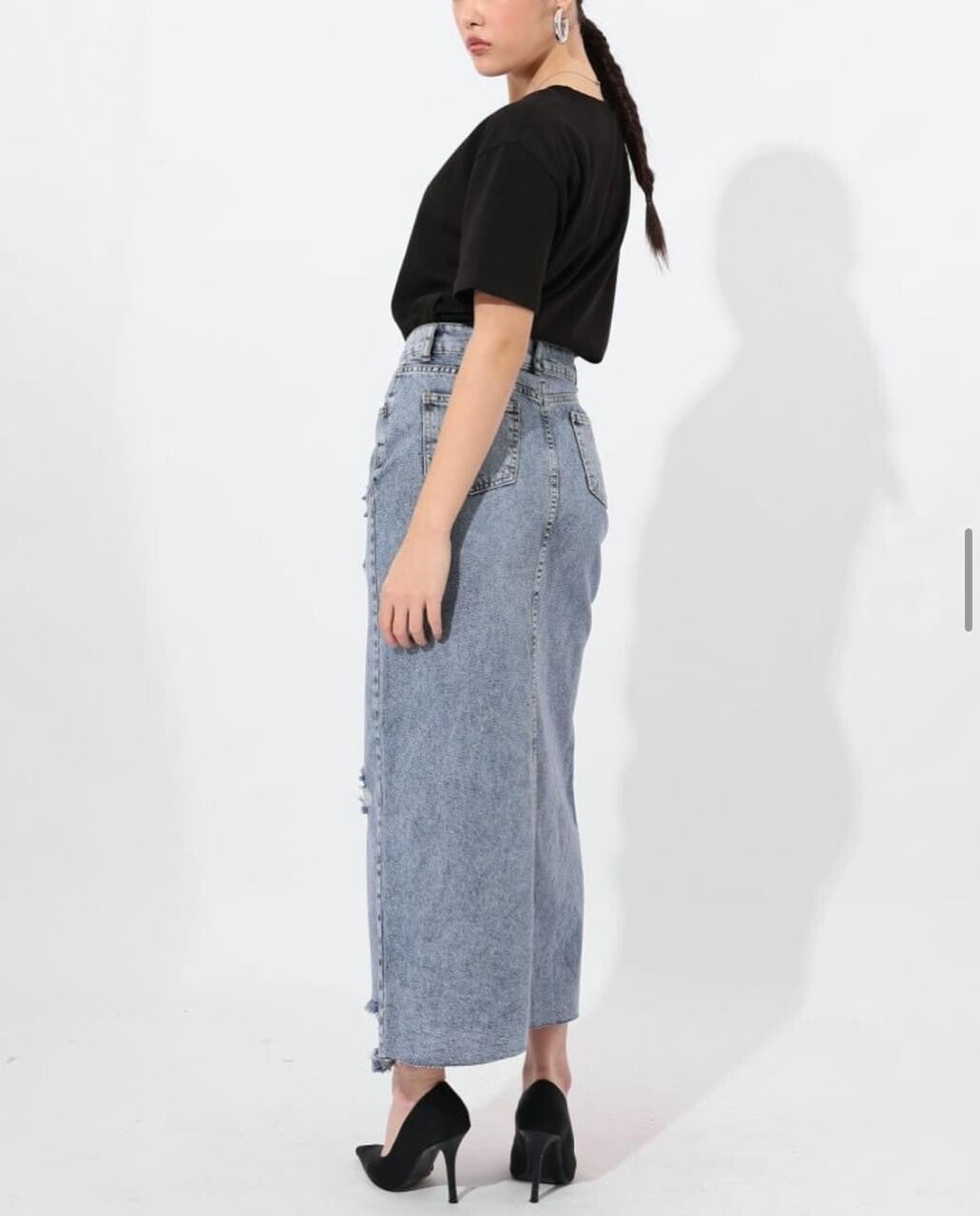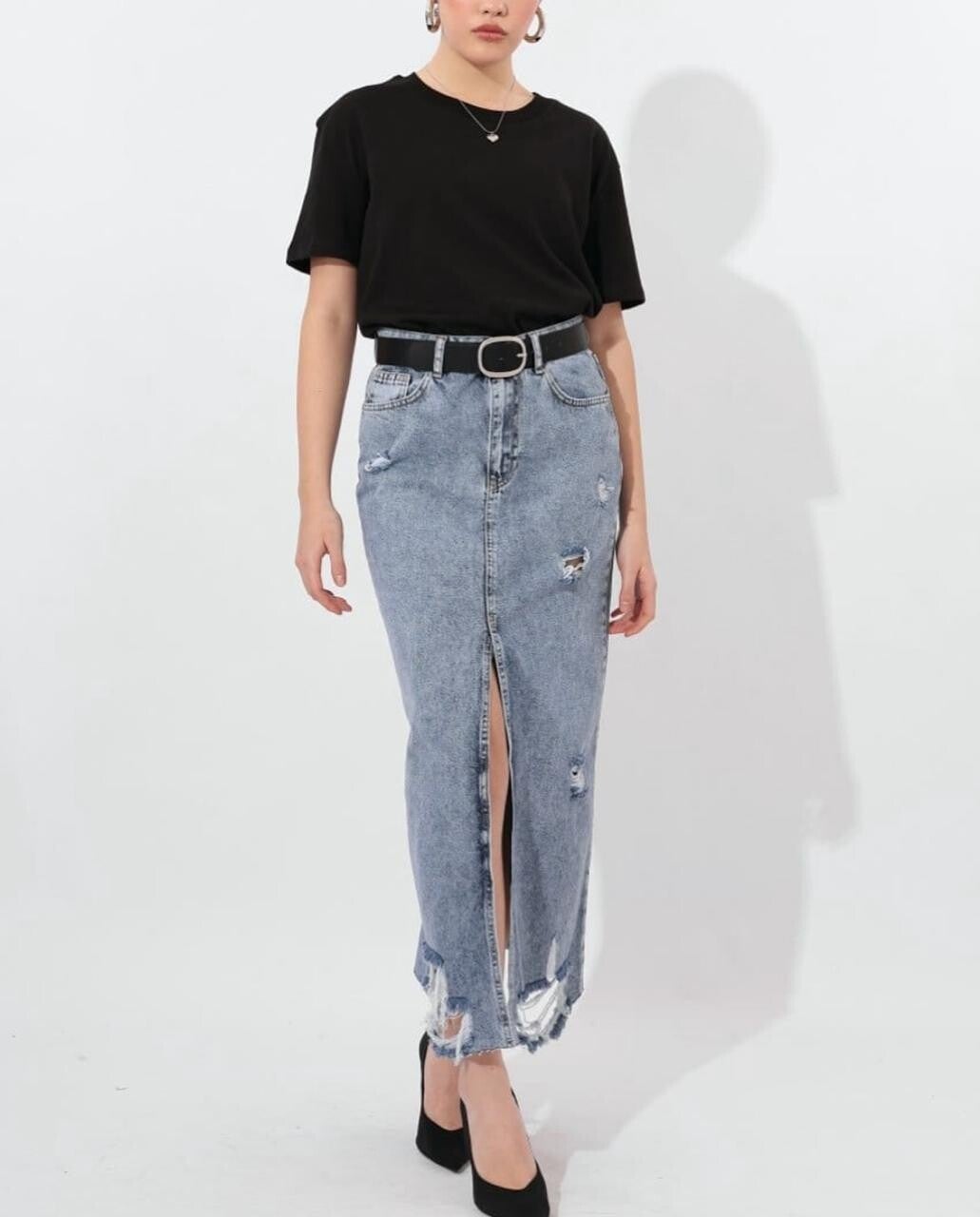 Fund xhins maxi me prerje moderne – një veshje që bashkon stilin urban me elegancën e përditshme, duke sjellë një pamje unike dhe tërheqëse në çdo rast. Ky fund maxi është krijuar për të dhënë një look të fortë, modern dhe njëkohësisht të rehatshëm, perfekt për sezonet e pranverës dhe verës, por gjithashtu i përshtatshëm edhe për veshje me shtresa në ditët e freskëta të vjeshtës.I punuar nga xhins me cilësi të lartë, ky fund ka një teksturë të qëndrueshme, por që përshtatet bukur me formën e trupit, duke ofruar rehati dhe qëndrueshmëri gjatë gjithë ditës. Ngjyra e larjes gri-blu vintage, së bashku me detajet e grisjeve artistike, i japin një pamje “distressed” që e bën të duket modern dhe me karakter. Pjesa e përparme është e veçuar me një çarje të gjatë elegante, e cila lejon lëvizje të lirë dhe një prekje femërore, duke e bërë këtë fund ideal për raste të ndryshme – nga përditshmëria deri te mbrëmjet casual.Detajet e xhepit klasik në pjesën e përparme dhe të pasme, si dhe qepjet e dukshme, i japin autenticitetin e një xhinsi origjinal. Pjesa e belit është e lartë, duke nxjerrë në pah siluetën dhe duke e bërë të lehtë kombinimin me bluza të futura brenda apo topa të shkurtër për një pamje më trendy. Skajet me efekt të grisur shtojnë një ndjesi boho dhe “street style”, duke e bërë këtë produkt një nga artikujt më të spikatur në garderobën tuaj.