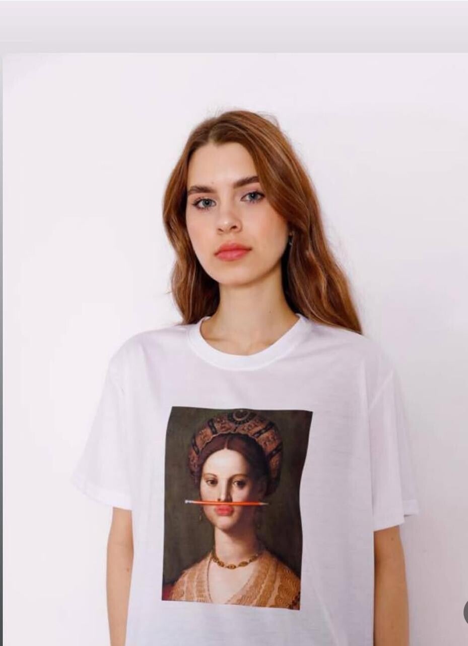 Kjo bluzë e bardhë është një përzierje perfekte midis artit klasik dhe humorit modern, duke e kthyer një veshje të përditshme në një deklaratë stili. E realizuar nga material pambuku i cilësisë së lartë, bluza ofron ndjesi të butë, rehati gjatë gjithë ditës dhe qëndrueshmëri edhe pas shumë larjesh.Në pjesën e përparme spikat një print unik me portret klasik, i cili është ndërthurur me një detaj modern e argëtues: një laps i vendosur në mënyrë ironike, duke i dhënë pamjes një karakter të veçantë dhe krijues. Ky element artistik e bën bluzën tërheqëse për ata që pëlqejnë të luajnë me kontrastet mes së kaluarës dhe të tashmes.