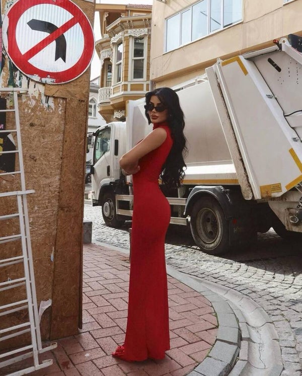 Ky fustan i gjatë dhe mahnitës në ngjyrë të kuqe të zjarrtë është krijuar për të bërë çdo hyrje të paharrueshme. Dizajni asimetrik me një shpatull të zbuluar dhe detajet e jakës së mbështjellë rreth qafës i japin një pamje moderne, plot finesë dhe elegancë. Ngjyra e kuqe e thellë reflekton pasion, vetëbesim dhe luks, duke e bërë këtë fustan zgjedhjen ideale për çdo event special.Materiali elastik përqafon në mënyrë perfekte linjat e trupit, duke krijuar një siluetë të gjatë dhe të hijshme. Jakë e integruar me detaj dekorativ në sup shton një prekje unike dhe sharm të veçantë, duke tërhequr vëmendje në mënyrë të sofistikuar.