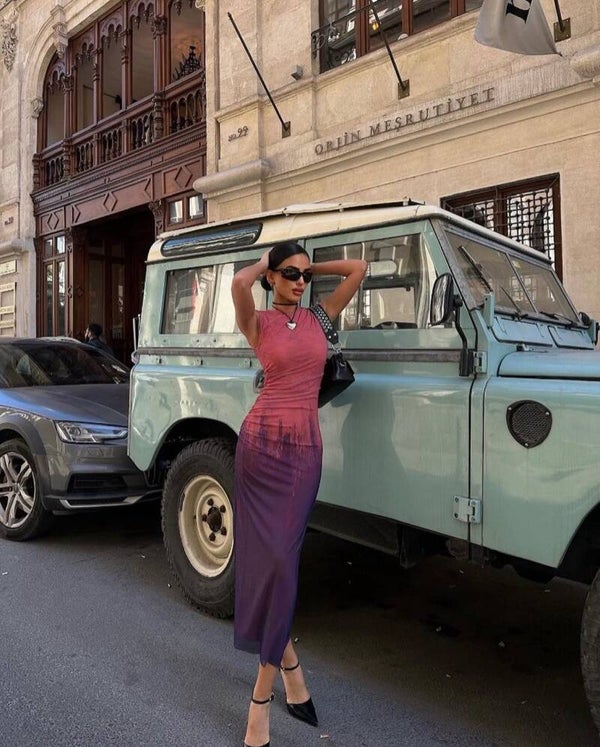 Ky fustan maxi me efekt ombre është zgjedhja perfekte për të gjitha rastet kur dëshironi të bini në sy me një stil unik, elegant dhe modern. Me një kombinim ngjyrash mahnitës nga rozë e butë në pjesën e sipërme deri te vjollca e thellë në fund, ky fustan krijon një tranzicion delikat që tërheq vëmendjen dhe shton finesë në çdo paraqitje.Prerja e ngushtë dhe materiale elastike i japin trupit një përqafim perfekt, duke theksuar linjat natyrale dhe krijuar një siluetë femërore e të sofistikuar. Dizajni pa mëngë dhe qafa e mbyllur i shtojnë një prekje minimaliste, duke e bërë këtë fustan ideal si për mbrëmje elegante, darka romantike apo evente speciale ku kërkohet elegancë me një kthesë moderne.Materiali i butë dhe i rehatshëm siguron liri lëvizjeje, ndërsa gjatësia maxi i jep një pamje të gjatë dhe të hijshme. Mund të kombinohet lehtësisht me taka klasike, sandale elegante apo aksesorë minimalistë për një paraqitje të përkryer.