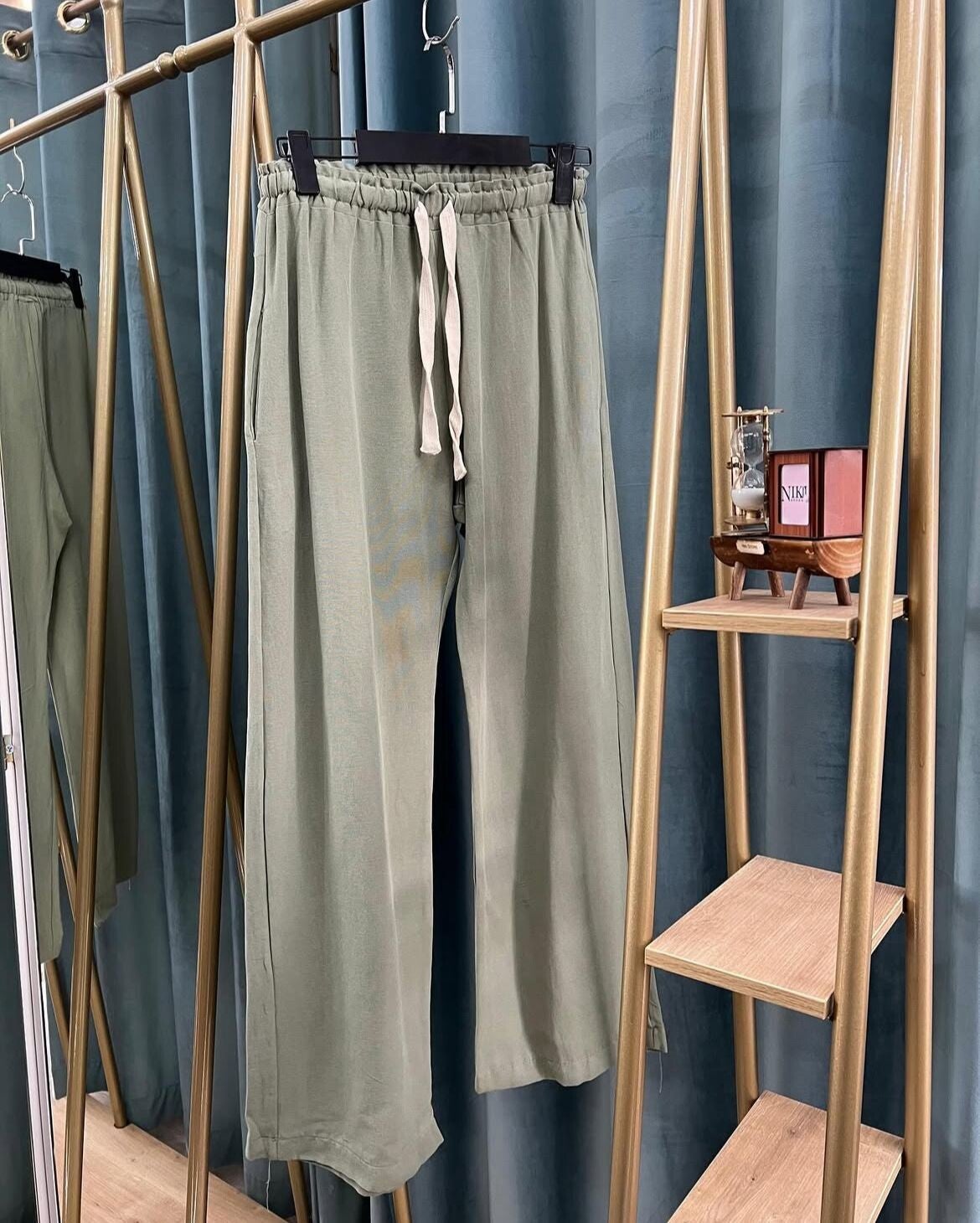 Këto pantallona lino ofrojnë një kombinim perfekt mes stilit minimalist dhe rehatisë natyrale, duke u bërë zgjedhja ideale për ditët e ngrohta dhe për një pamje të kuruar pa mundim. Të punuara nga një përzierje lino e lehtë dhe frymëmarrëse, ato sigurojnë freski dhe komoditet gjatë gjithë ditës, ndërsa prerja e lirshme garanton lëvizje të lirë dhe elegancë moderne.Ngjyra sage green (jeshile e butë) sjell një ton natyror dhe shumë të lehtë për t’u kombinuar me ngjyra neutrale, pastel apo aksesorë më të fortë, duke e bërë këtë pantallon një bazë të gjithanshme në garderobën tuaj. Dizajni me bel elastik dhe lidhëse rregulluese i jep një përshtatje të personalizueshme dhe praktike, ndërsa xhepat anësorë shtojnë funksionalitet dhe stil casual-chic.Këto pantallona janë ideale për kombinime të shumta: mund t’i vishni me një këmishë lino për një look veror elegant, me një top pambuku për një stil të përditshëm urban, ose t’i kompletoni me sandale apo atlete për një pamje të relaksuar.