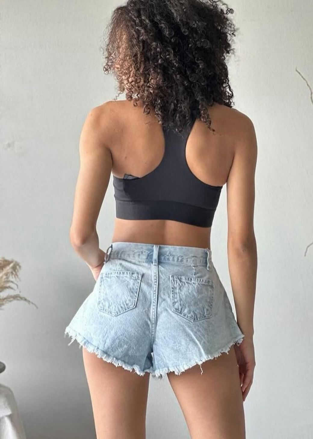 Sjellni në garderobën tuaj një pjesë të veçantë dhe plot stil me këto pantallona të shkurtra jeans, të krijuara për të rënë në sy dhe për të ofruar rehati maksimale në ditët e ngrohta. Të punuara nga xhinse me ngjyrë blu të çelët, këto pantallona përfaqësojnë kombinimin perfekt midis casual dhe trendit më të fundit.Dizajni i tyre i veçantë me pjesë anësore të valëzuara dhe fund të prerë “raw cut” u jep një pamje lozonjare dhe moderne, duke krijuar një siluetë interesante që bie në sy në çdo dalje. Pjesa e belit me mbyllje me kopsa dhe zinxhir garanton përshtatje të sigurt, ndërsa xhepat praktikë në pjesën e përparme shtojnë funksionalitet pa humbur stilin.