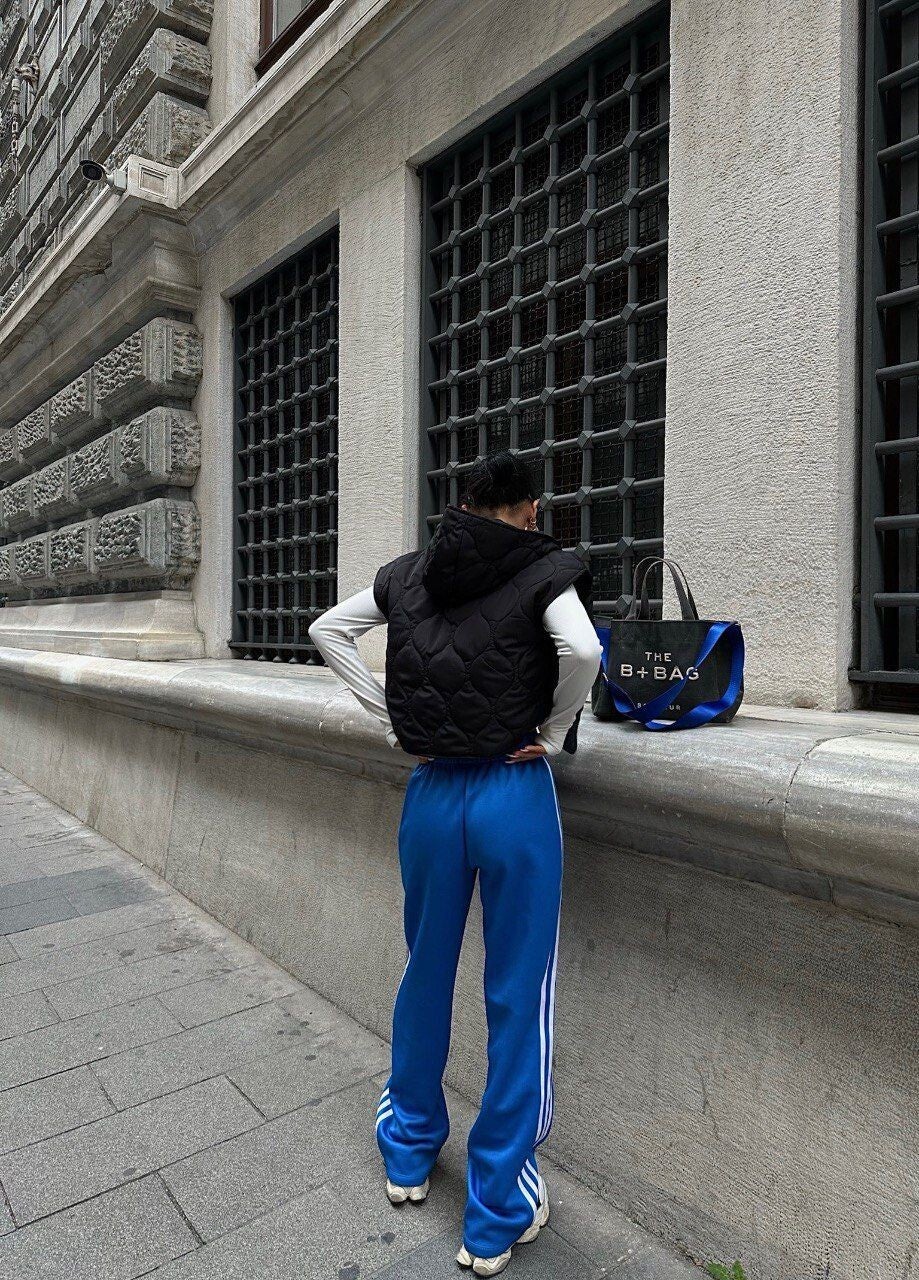 Sillni një frymë stili urban dhe prakticiteti në garderobën tuaj me këtë jelek të zi të fryrë, i dizajnuar për të kombinuar ngrohtësinë me një pamje moderne. Me një prerje sportive dhe elegante, ky jelek është perfekt për veshje të përditshme, duke ju lejuar të krijoni kombinime të ndryshme me bluza, xhaketa të holla apo triko.Materiali i tij i lehtë, por izolues, ofron mbrojtje nga era dhe freskia, duke ju mbajtur rehat gjatë stinëve të kalimit si vjeshta apo pranvera. Detajet e qepjes me motive të buta valëzuese i japin një pamje dinamike dhe trendi, ndërsa kapuçi praktik dhe zinxhiri i përparmë shtojnë funksionalitet dhe stil.