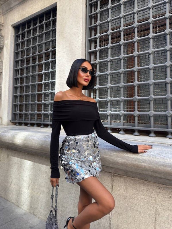 Kjo bluzë elegante me shpatulla të zbuluara (off shoulder) është zgjedhja perfekte për t’i dhënë çdo veshjeje një prekje femërore dhe magjepsëse. Ngjyra e zezë klasike e bën të gjithanshme dhe lehtësisht të kombinueshme, ndërsa prerja me qafë të gjerë që qëndron bukur mbi shpatulla krijon një pamje të sofistikuar dhe sensuale njëkohësisht.Materiali elastik dhe i butë përqafon trupin me delikatesë, duke siguruar komoditet gjatë gjithë ditës apo mbrëmjes. Mëngët e gjata balancojnë në mënyrë perfekte shpatullat e zbuluara, duke i dhënë bluzës një elegancë të veçantë dhe moderne.Ideale për t’u veshur me funde të shkurtra me shkëlqim, pantallona lëkure ose xhinse me bel të lartë, kjo bluzë është një bazë perfekte për kombinime nga më të ndryshmet – nga pamje chic për mbrëmje deri tek stile urbane për dalje në qytet.