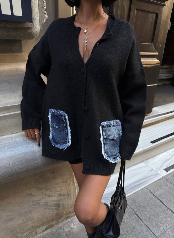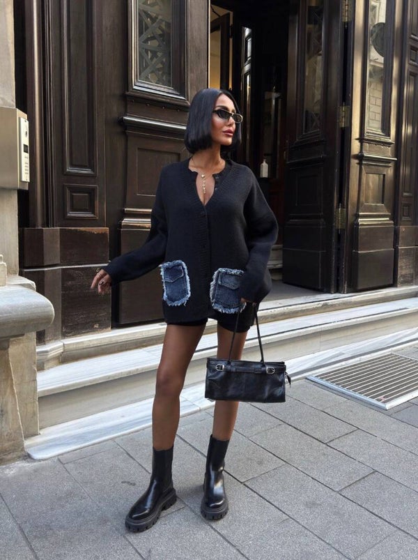 Kjo triko oversize në ngjyrë të zezë është zgjedhja perfekte për një pamje urbane dhe moderne që kombinon stilin casual me një prekje të veçantë. E punuar me material triko të butë dhe të ngrohtë, kjo veshje ofron rehati maksimale ndërsa ju jep një look të sofistikuar dhe të guximshëm.Dizajni i saj i lirshëm krijon një siluetë trendy që përshtatet lehtësisht me çdo trup, ndërsa xhepat e mëdhenj me detaje jeans të grisura sjellin një kontrast unik dhe një ndjenjë “street style” shumë në modë. Kopsa e përparme e bën të lehtë veshjen dhe heqjen, si dhe ju lejon ta përdorni si triko apo si xhaketë të lehtë sipas nevojës.
