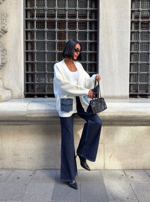 Kjo triko oversize në ngjyrë krem sjell një kombinim perfekt mes rehatisë dhe stilit urban-chic. E realizuar nga material triko i butë dhe cilësor, kjo veshje është ideale për ditët e freskëta kur kërkoni një pamje moderne, por edhe komode.Dizajni me prerje të lirshme krijon një siluetë elegante dhe të rehatshme, duke ju lejuar ta vishni mbi topa, këmisha apo fustane për një stil të shumëanshëm. Xhepat e mëdhenj me detaje jeans dhe buzë të grisura sjellin një kontrast origjinal dhe e bëjnë këtë triko një statement piece që bie në sy.
