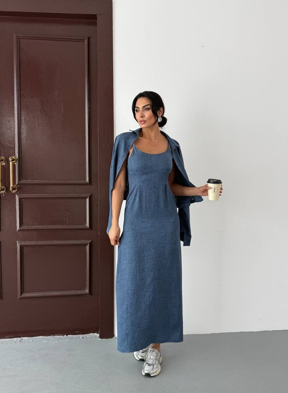 Krijoni një stil modern dhe të rehatshëm me këtë fustan të gjatë xhins, i cili kombinon thjeshtësinë e përditshme me elegancën e minimalizmit. Një veshje e gjithanshme që mund të përdoret si për ditë të zakonshme, ashtu edhe për dalje urbane me stil.
