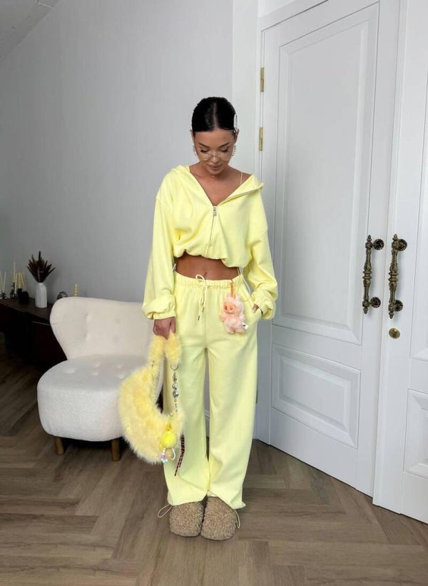 Shijo ngjyrën e diellit me këtë kostum të verdhë vibrant, një kombinim perfekt mes rehatisë sportive dhe stilit modern “streetwear”.