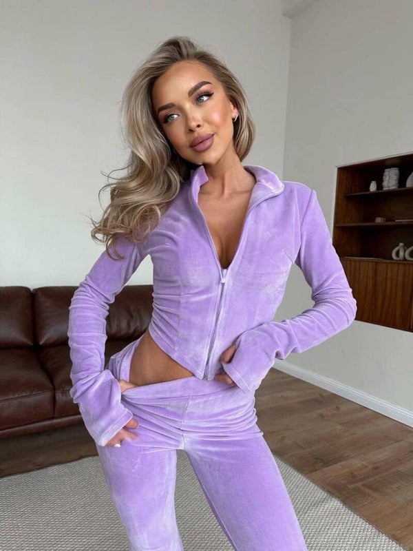 Ky set me material “velvet” përqafon trupin me butësi dhe shkëlqim delikat, duke theksuar linjat në mënyrën më elegante.