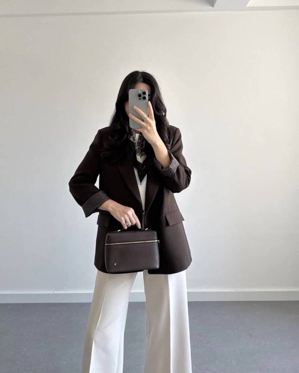 Blejzëri “Mocha Chic” është simbol i balancës perfekte midis klasikes dhe modernes, duke i dhënë çdo pamjeje një shkëlqim të natyrshëm.